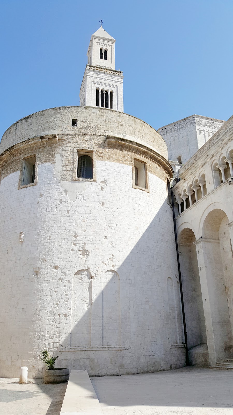 Į Castello Svevo pilį pasidairome tik iš tolo. Aikštelėje pamatę fontaną, sukame į dešinę. Čia pat randame ir nuorodas, nukreipiančias į Baziliką. Tačiau pirmiausiai ateiname prie jau ne kartą matytos San Sabino katedros. Pasirodo, mūsų ankščiau buvo nusukta nuo pagrindinės gatvės. Todėl nebedarome senos klaidos ir Strada del Carmine gatve einame tiesiai tolyn.